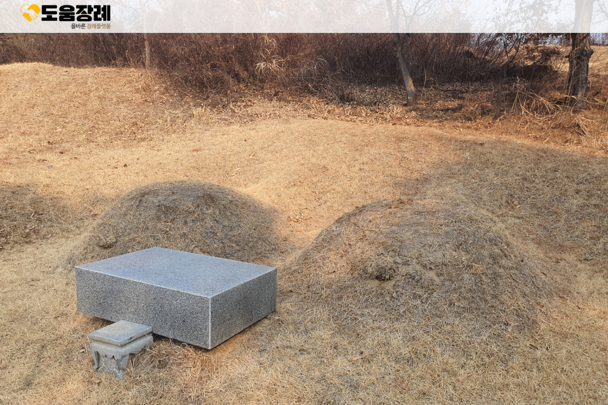 합장묘는 묘지(봉분) 1기에 두분이 나란히 모셔져 계신 묘(墓)를 말합니다.