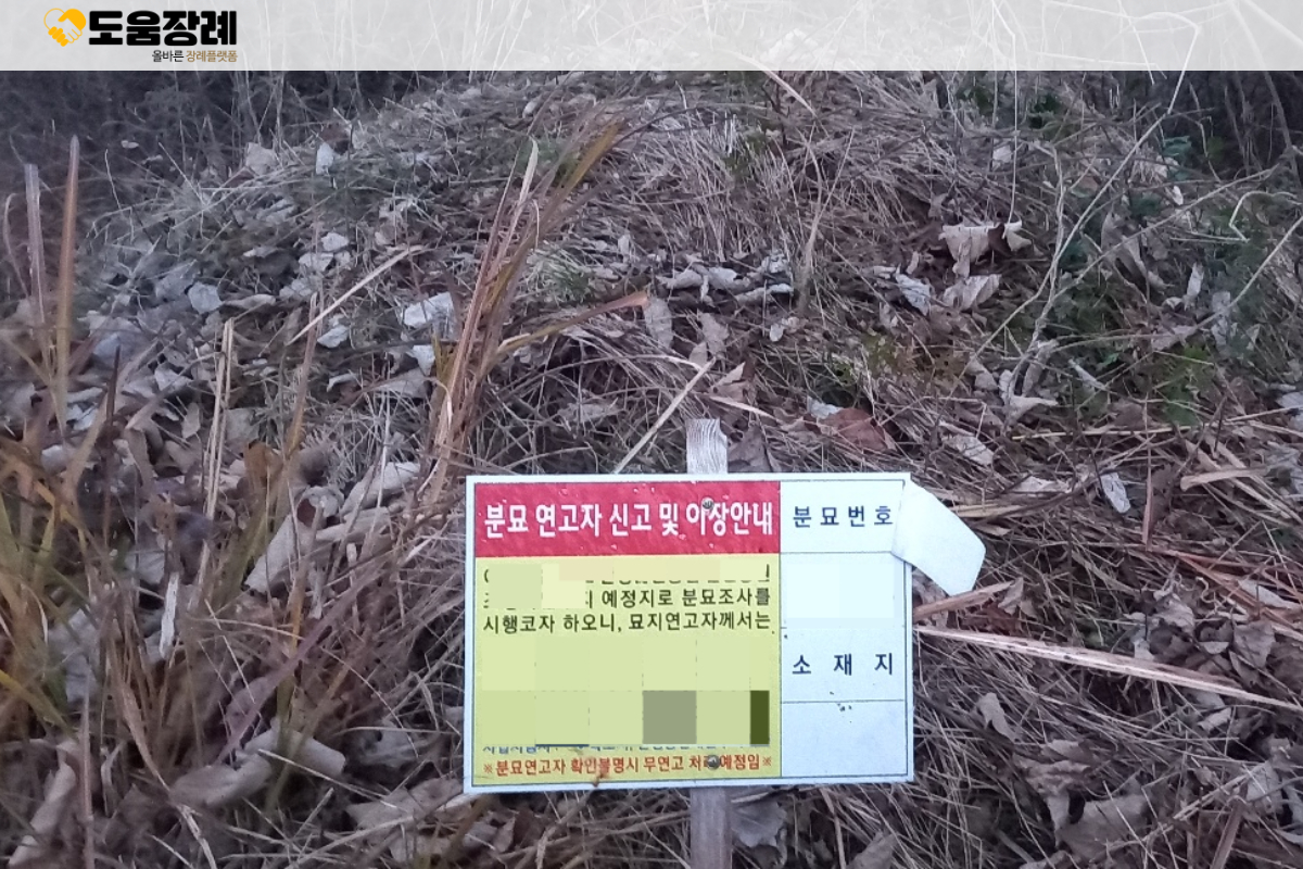 ※ 묘지이장 및 묘지개장 공고일로부터 3개월이상 연고자가 나타나지 않을 경우